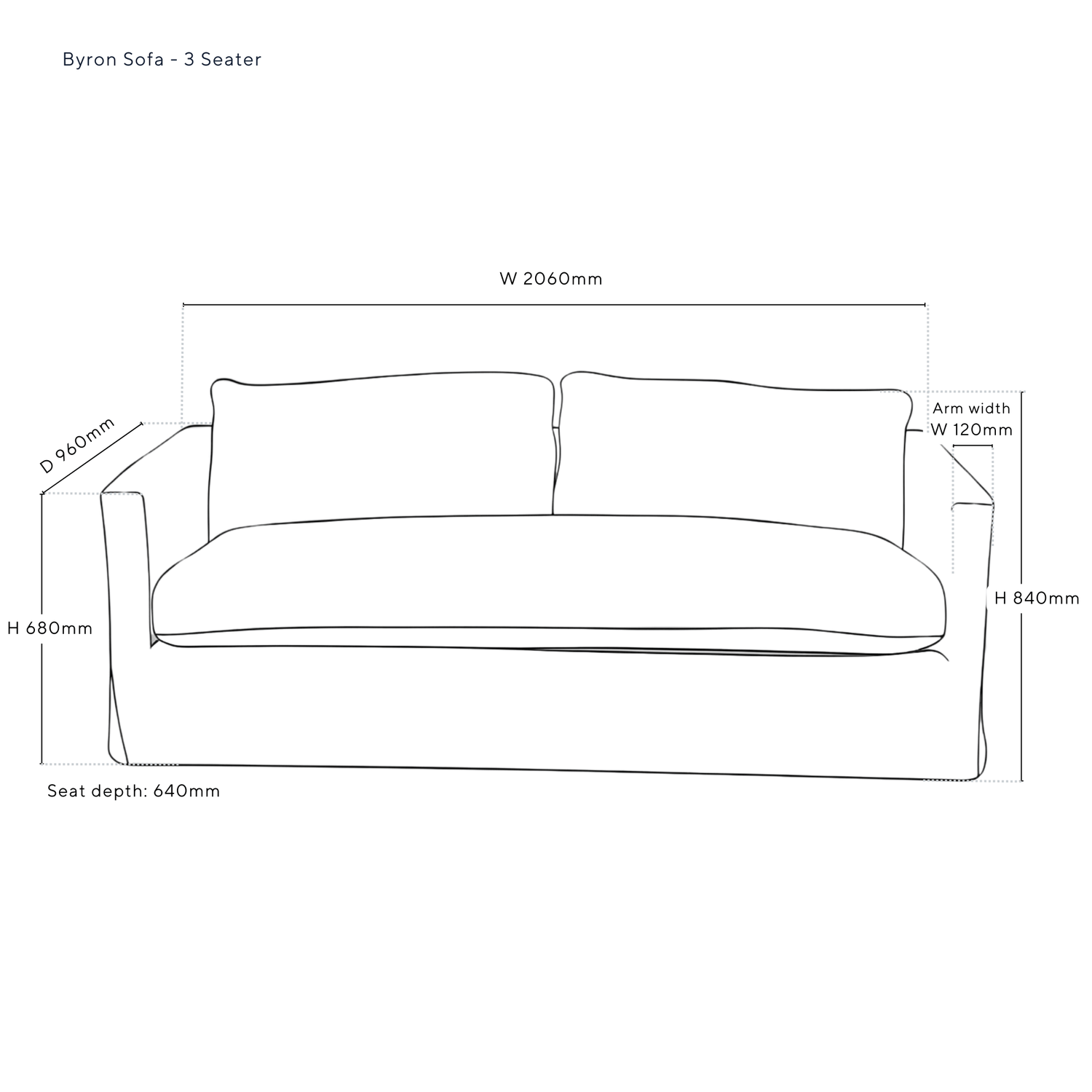 - • 3 seater Byron Sofa includes 2 feather back cushions and 1 base foam/feather cushion.
